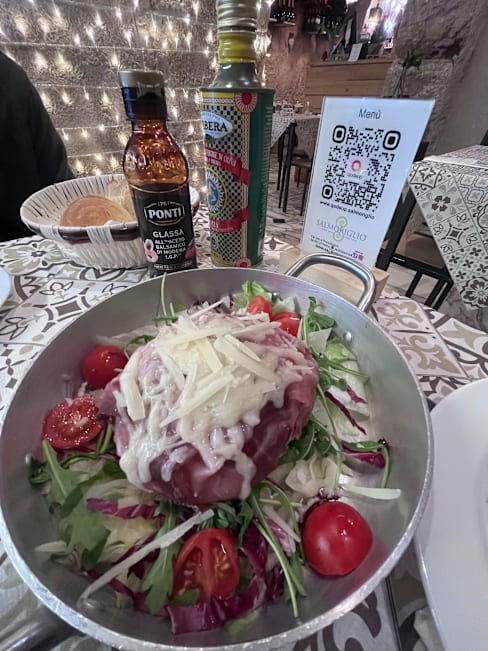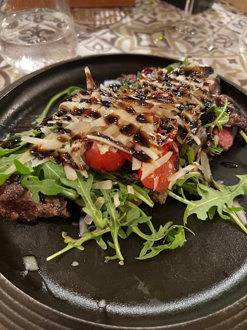 9/10We enjoyed our evening here. The food was good.We enjoyed the tagliata of beef although the Parmesan and rocket was a bit lacking. We also had the lamb skewers which were excellent as were the fries. We had a lovely wine from the rose selection which was very reasonably priced. To finish we had the lemon tirimisiu which was great. The music was chilled and the staff were lovely.The overall price was extremely reasonable and we would gladly return. Just one small criticism,if the table is wonky the guests should not have to fix it themselves!