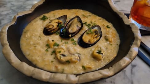 7/10I thought it was strange that an Italian restaurant didn’t have lasagna on the menu. I ordered a shrimp risotto and while the pasta was good, the shrimp was quite awful. The wait staff was kind but didn’t offer any kind of introduction to the menu or establishment or ask about the meal performance. This made the service too basic for white tablecloth with expected gratuity. Drinks and desserts were okay. The kitchen did a good job with plating the meal.