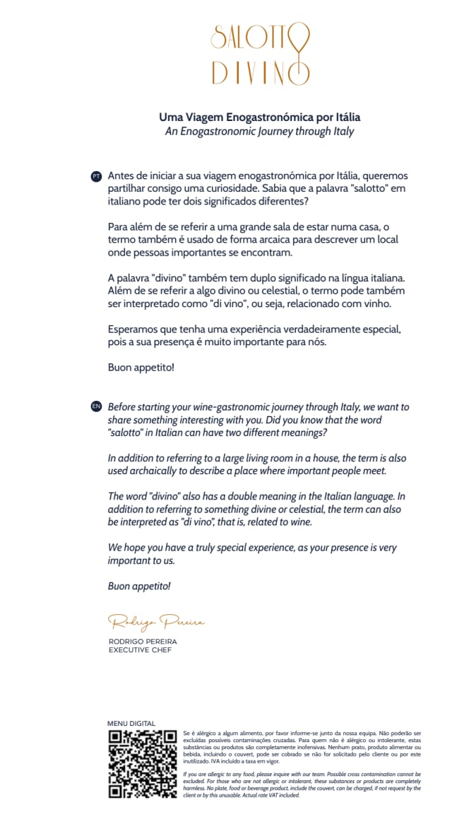 Thank you so much for your wonderful review! It was truly a pleasure to welcome your family, and we're thrilled to know that everyone — including the little picky eaters — left happy! 😊 We completely understand the hesitation about eating Italian food in Portugal, but we’re so glad you gave us a chance. Our team works hard to deliver both quality and warmth, and it's rewarding to hear that we hit the mark. We hope to welcome you all back again soon — you're always welcome at Salotto Divino! 🇮🇹🍷🍝