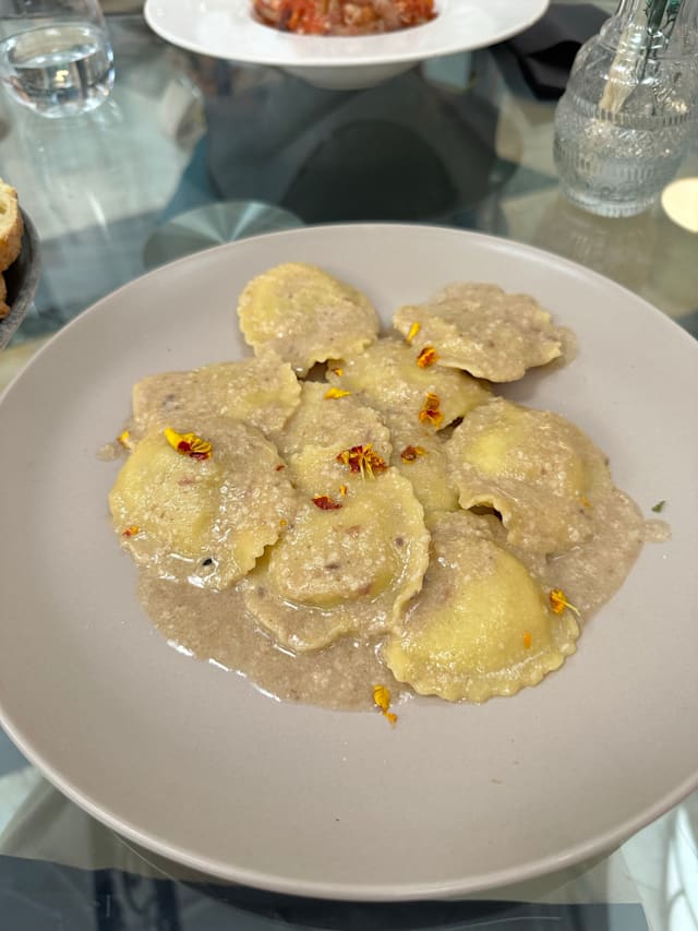 10/10Although it was a bit disappointing that there was a fitness club nearby, which made it hard to fully enjoy the atmosphere, the staff who served us was incredibly kind, and every dish was elegant and delicious. The pumpkin ravioli was especially impressive—it was so good that I couldn’t stop marveling at it. We asked the staff for a dessert recommendation, and the Eclipse was absolutely delightful.
