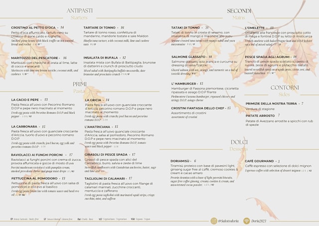 10/10We had a very pleasant meal here. The food was very good. I had the pasta amatriciana and my mother had the carbonara. We followed with some tasty desserts. The dining room is quiet and elegant, with Art Nouveau posters on the walls. It is a bit tricky to find - you have to enter via the Doria Center, whose door is on the side street called the Vicolo Doria - but well worth it.