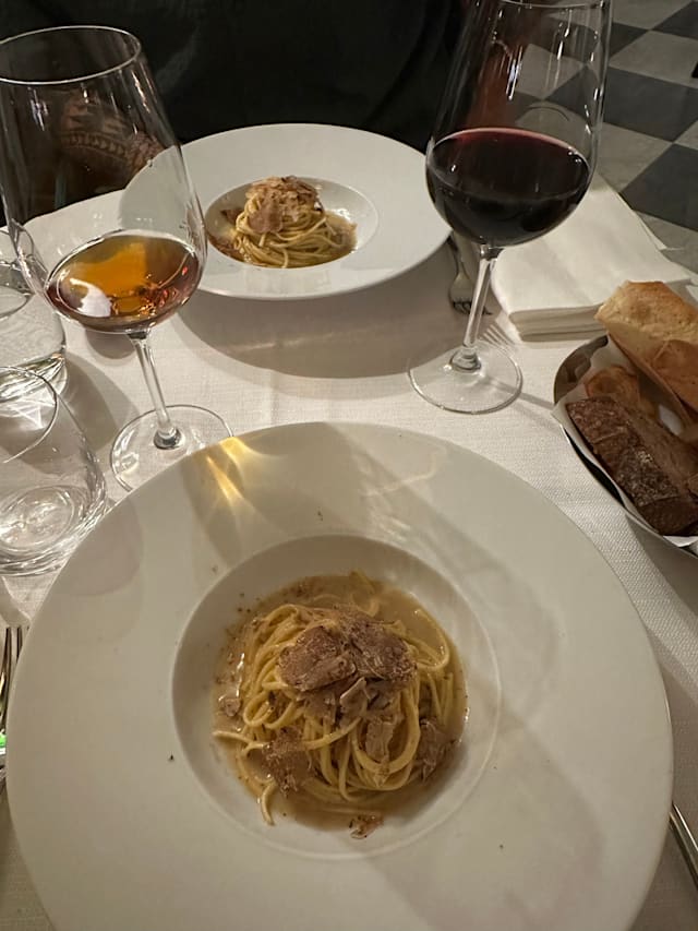 6.5/10Very nice restaurant ambience. Service was below average, nothing wrong but not really that attentive per se. The problem here is the food - I am truly shocked this place has such high ratings. All 4 in our party agree. The pasta dishes were good - fine, not great. The appetizers were not good - the burrata with tomato and basil “boba” balls was almost flavorless. It was a beautiful presentation - but that’s it. Tomatoes had no special flavor, neither did the burrata. The other appetizer was the 63 degree egg. It is basically a slimey cheesy eggy soup thing. Kinda not nice. The price to value ratio is like really bad here. Do not go. Sorry, but it’s true. Maybe poor management- not sure - as we were leaving there was some small argument or whatever between two staffers - probably no big deal as I don’t understand Italian - but you just don’t see two professionals having some sort of annoyed / angry face. Wasted my time writing this but hopefully it can help others.
