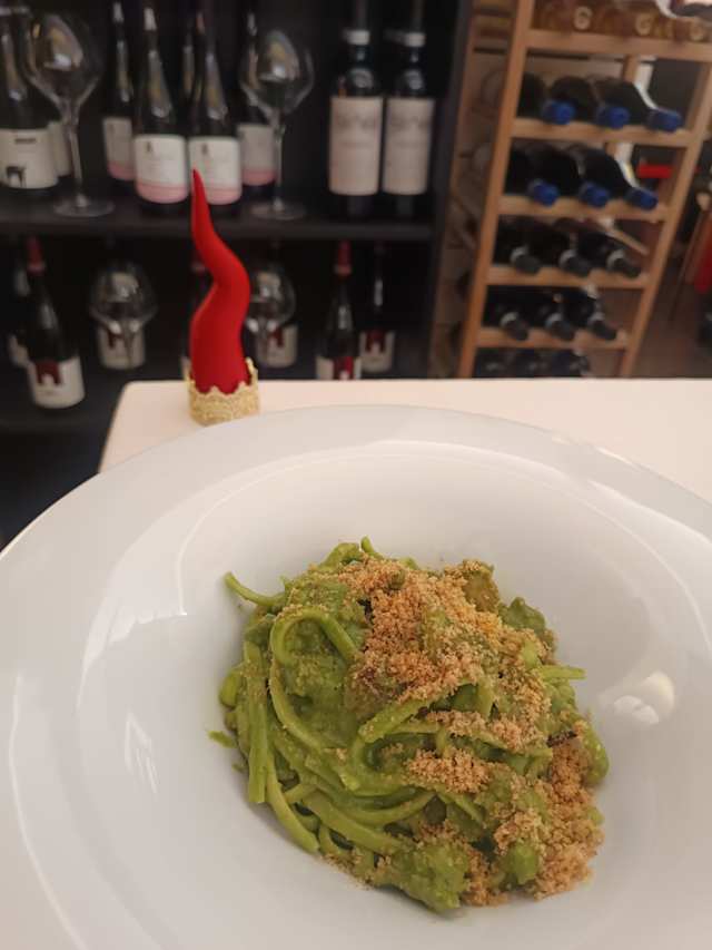 - Linguine con salsiccia, friarielli e pane aromatizzato