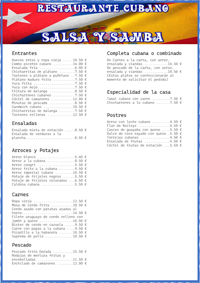 El restaurante cubano Salsa y Samba, un lugar que te transportará a la isla caribeña desde el primer momento en que cruces su puerta. El ambiente está cargado de energía y la decoración es típica de la cultura cubana, con paredes pintadas con colores vivos y alegres, fotografías de artistas y perso...