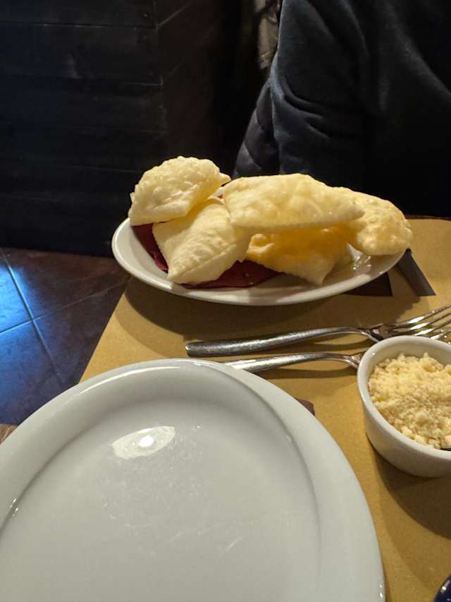 - Tradizione bolognese: cotoletta fritta, crudo di parma e parmigiano reggiano bagnata con il brodo di cappone.
