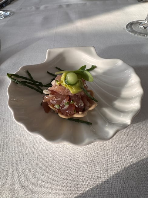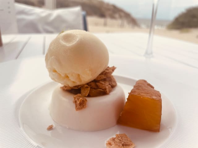 10/10Really nice views to the ocean, since it is protected with the dunes there was not wind, service is excellent, I recommend tartare, scallops and fish.Smart dress code.