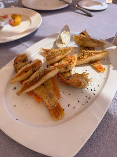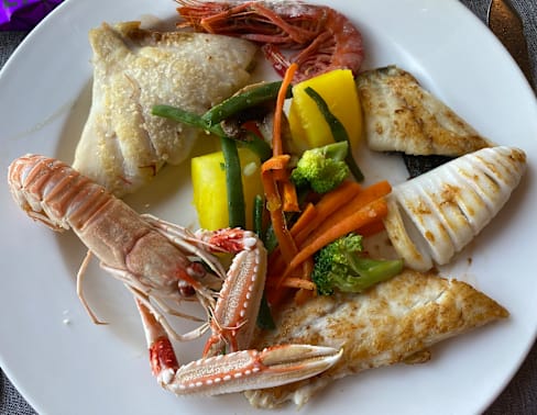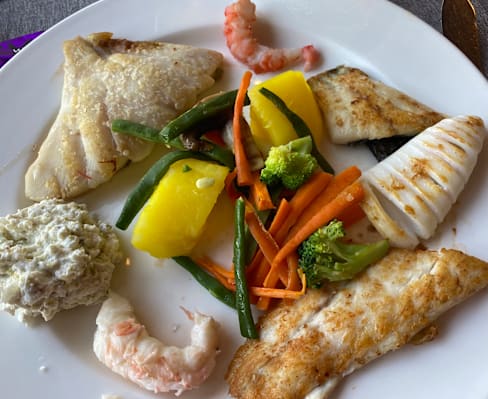 8.5/10It’s the second time we are here and we love the fresh fish fished the same day, it is perfectly cooked or grilled and taste like heaven. If you love fish and want it to taste at the most go here! The staff is stressed and they forget things all the time but they are nice and are doing there best. The surroundings outside is nice but you have to be four or more to have the table’s by the harbour so we felt that we sat half the way indoors both times and it was very hot, but to be fair it was some of the hottest day’s i the middle of the summer.