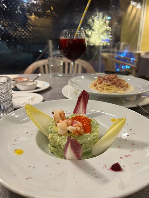 4.5/10Overall a disappointment. We were looking for somewhere nice for our Christmas day meal. This place looked like it would be nice. The restaurant is pretty, it is in a nice marina and decor nice. On a sunny day would be lovely to sit with a drink. We visited in the evening, there were heaters on but we were still very cold, we sat with our jackets on for the whole meal. The food was nice, but nothing special. We have had better on our stay here in the area for half the price. It was very expensive for what it was. Avoid the pinyas saltea, it sounded good but was not nice when it came. Just a bit of cold Pineapple with average creme catalan poured over it. Would not visit again due to the high cost of the food. There was a note on the menu about how the seafood was fresh but then frozen, or something along those lines which I found unusual. Would hope for the price it would all be fresh.