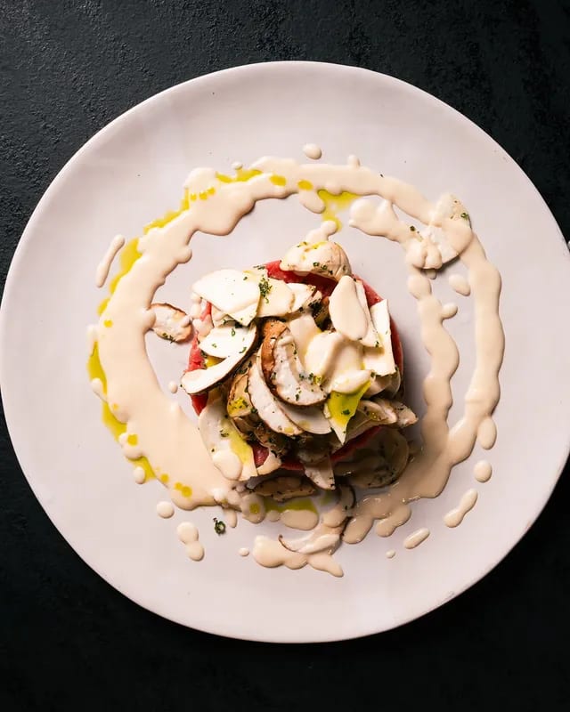 - Tartare di tonno, cruditè di carciofi e bottarga di muggine