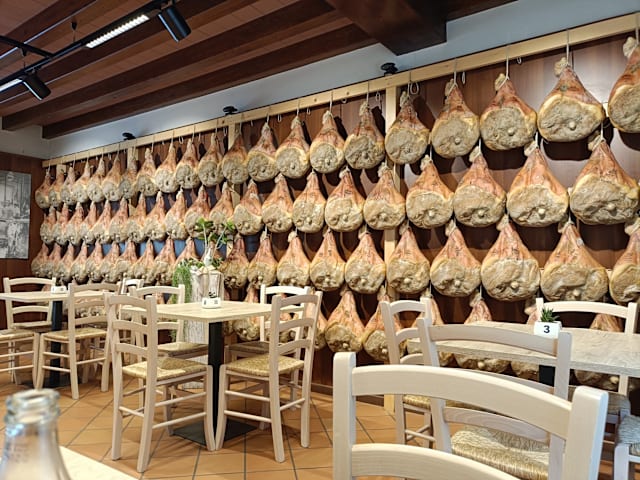 9.5/10A fabulous little eatery in the centre of Langhirano, a small town famous for its world-class prosciutto. This is first and foremost a high-quality shop selling the cold cuts and Parmesan cheese this region is celebrated for. And they've set up a small number of tables in a welcoming space where one can savour their specialities along with excellent local beer and wines. Not touristy at all, warm and competent staff, and good prices. I'll be back!