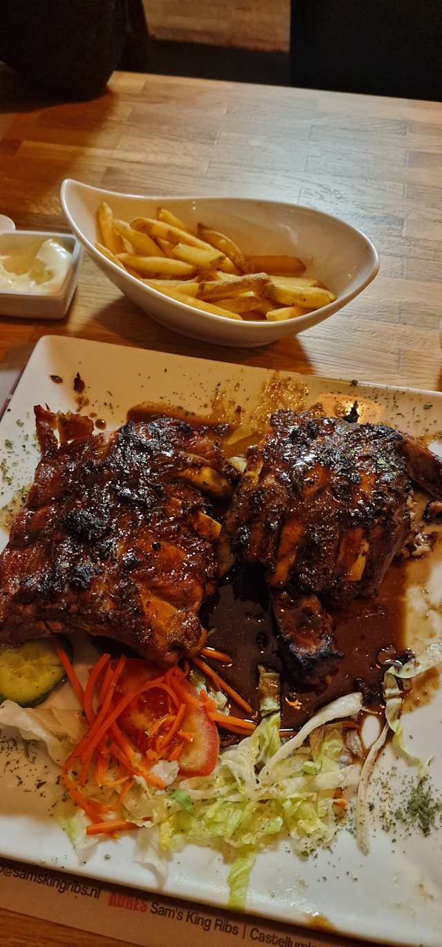 - Kipvleuegeltjes geserveerd met gebakken groenten