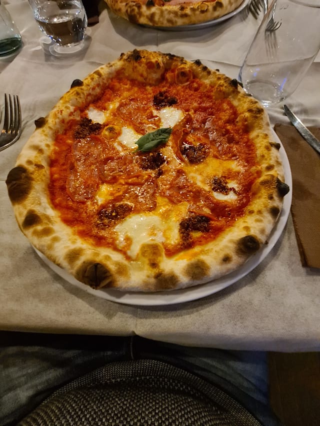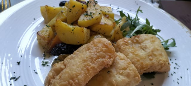 - parmigiana di melanzane, frittata di patate mpacchiuse con cipolla di Tropea e 'nduja, soppressata, capicollo, ricotta aromatizzata al pepe nero e curcuma con confettura di arance, pizzetta fritta al pomodoro, crocchetta di carne e crocchetta di riso
