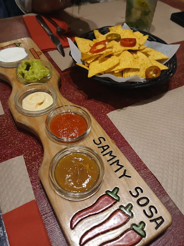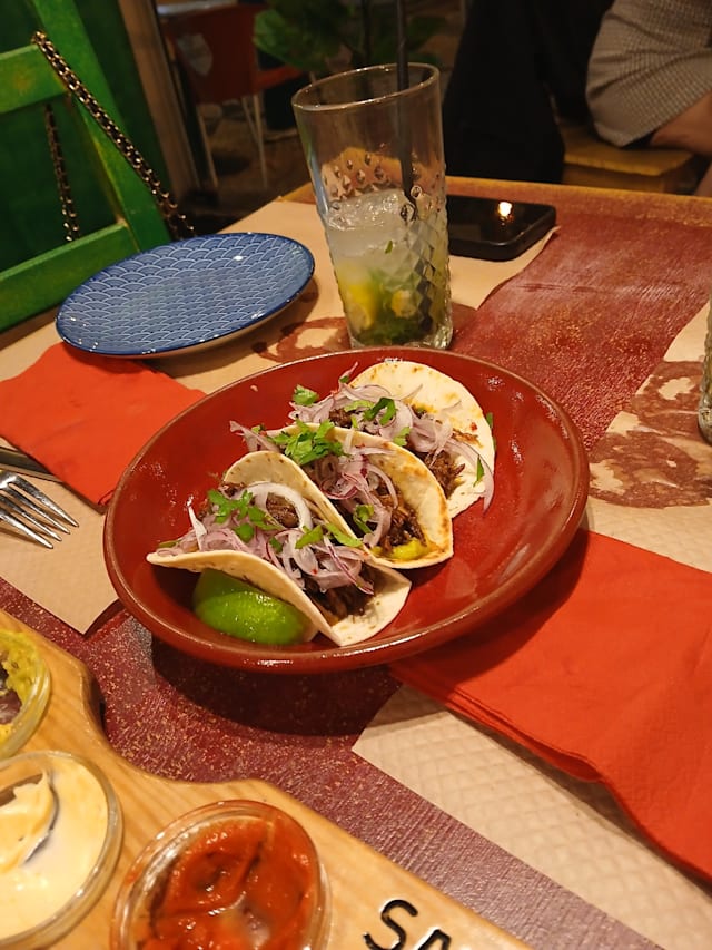 10/10Fun girls’ night out with spicy margaritas, a selection of salsas/guac/dips and tacos. There were 2 vegetarians in the group and they had plenty to choose from too.