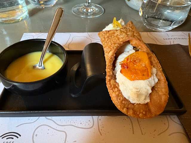 10/10We were part of the early seating having just arrived from Sicily, we found this near our lodging and were eager for something better than a Cornetto from the train station. Ramona greeted us in flawless English (and Spanish) bringing us to a quiet table close to the kitchen. This was a big win for us as the waiters were always checking in on us as they went to pick up orders. Ramona talked us into a few of the house specials like Parmigiana alla Sampietrino and Butter and Anchovy pasta Sampietrino. Both were tasty and carefully made. Carbonara and lamb chops also got devoured along the way. For dessert the Torta Sampietrino was generous spice cake with cream and peach topping. Staff was very attentive and helpful. Later in the evening it got louder but we did not have any issues with the noise.