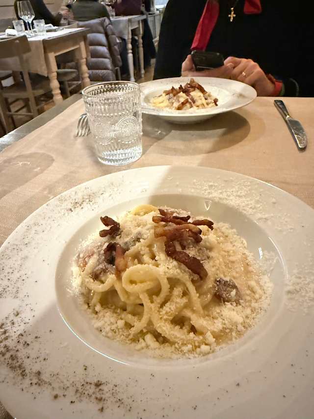 - Tonnarelli freschi, pecorino romano DOP, pepe nero.