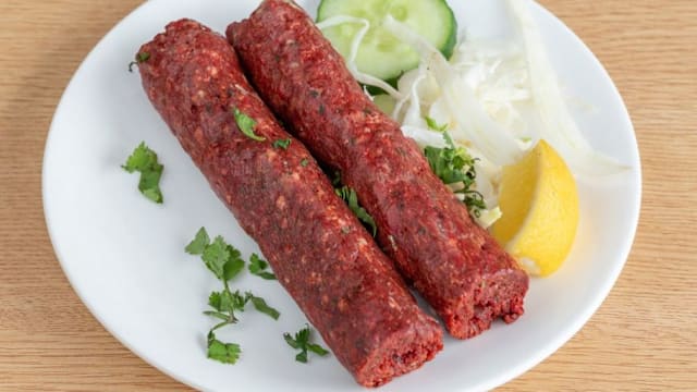 Viande hachée d'agneau en brochette, grillée et épices. Accompagné de main maison nun nature ou non fromage