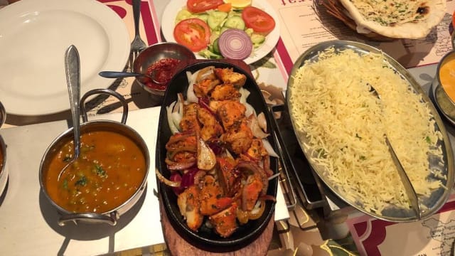 mixture of chicken tandoori, chicken tikka, lamb chops, fried prawns and seekh kabab marinated in Indian tandoori spices and grilled in clay oven