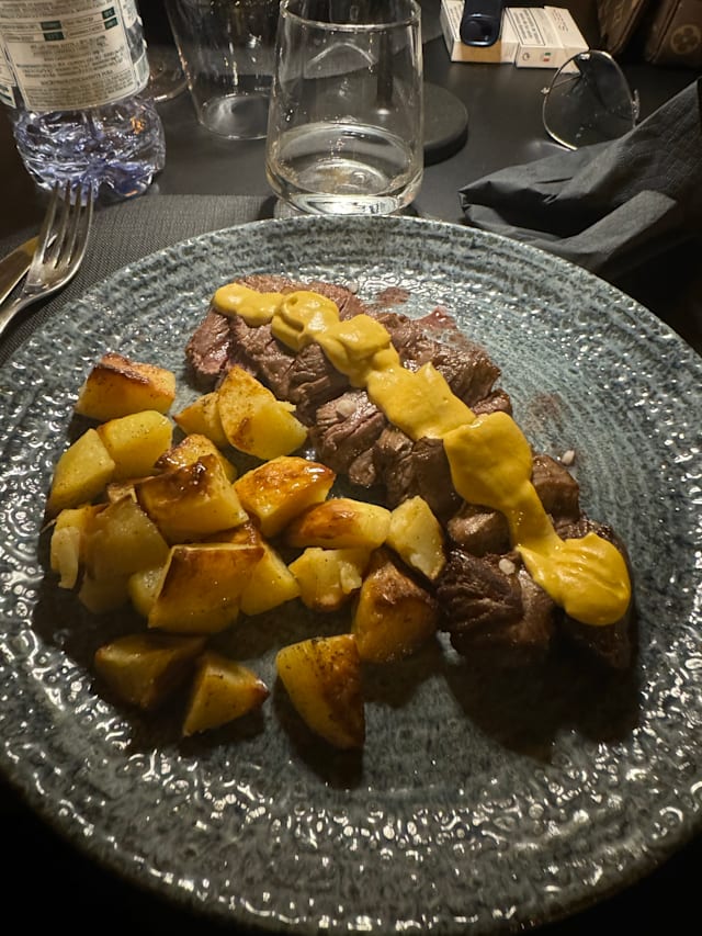 4/10The food was very very average, the service average, but the square the restaurant is in is very special. However, school aged children were riding ATV around the square for the entire hour we were there. It was very loud and dangerous.