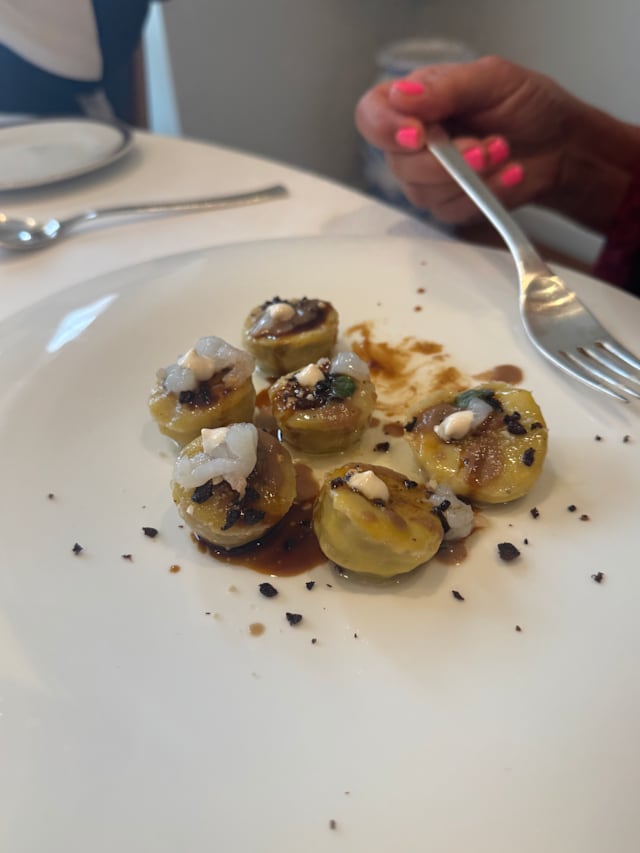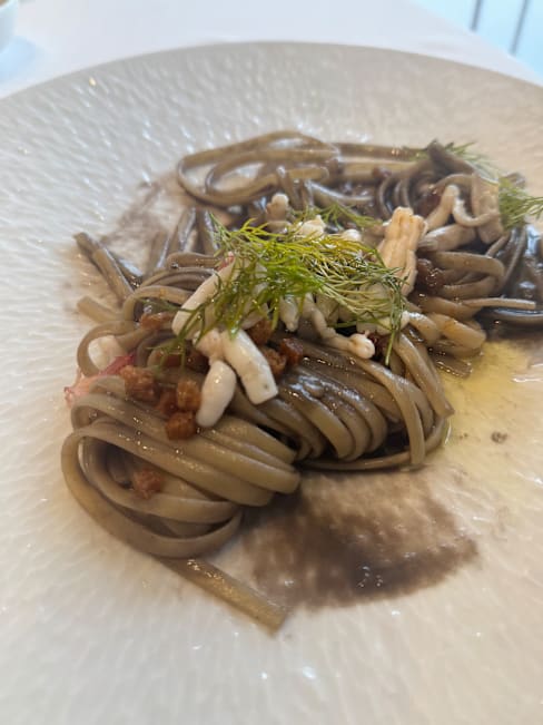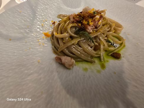 10/10I had spontaneously booked a table on my way to Genova and did not regret it one bit. From beginning to end, the entire experience was perfectly curated by Danilo and the team of service personnel, who all went above and beyond themselves to anticipate their guests' wishes and needs. I chose the surprise tasting menu and was rewarded with plate after plate of outstanding dishes, using excellent quality ingredients and seasoning them to perfection to bring out the best in them. The homemade bread, grissini and focaccia were a delight, and I especially loved the dish combining foie gras with seafood, the roasted corn and scallop, the perle de Genova pasta as well as the dessert (fried milk) and pre dessert (a play on kumquat). All in all: One of the best meals of my life, with some of the best service I have experienced - and on a final note, I will definitely remember the "perle di Genova" as one of the most delicious bites ever.