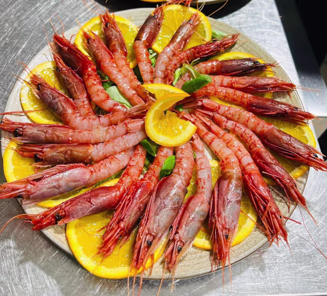 - Crudité di scampi gamberi con emulsione di agrumi