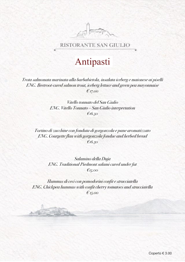 10/10The food and setting are absolutely exceptional. The value for money on the 4 course menu is incredible. 45 euros and you choose from meat or fish. The produce is so fresh, tasty and beautifully presented. The service is second to none. The friendly staff provide a free boat transfer from the lake shore to the beautiful island and suggest local wines and cocktails to perfectly compliment the delicious food. If you're visiting Lake Orta you have to book this wonderful experience.