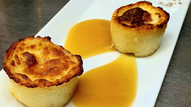Flan di pecorino su vellutata di pere