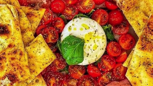 - Mozzarella de búfala, tomate cherry e manjericão