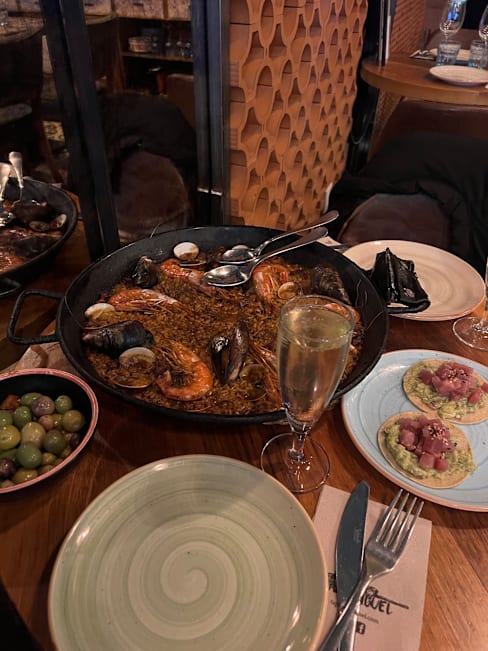 5.5/10We ordered paella for 2 people, tuna tapas, olives and dessert. Snacks and hot food arrived in 3 minutes. The paella was cold, dry and tasteless. You couldn't even warm it up properly? It was a complete disappointment, because we were very hungry. The tapas and dessert were good.
