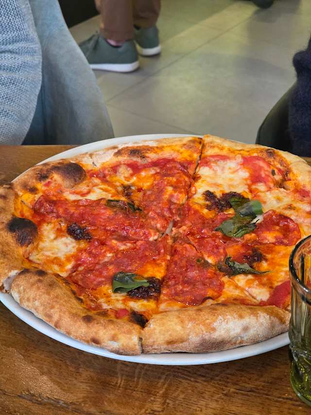 - Pomodoro, fiordilatte, spianata piccante, ‘nduja di spilinga, basilico, olio evo