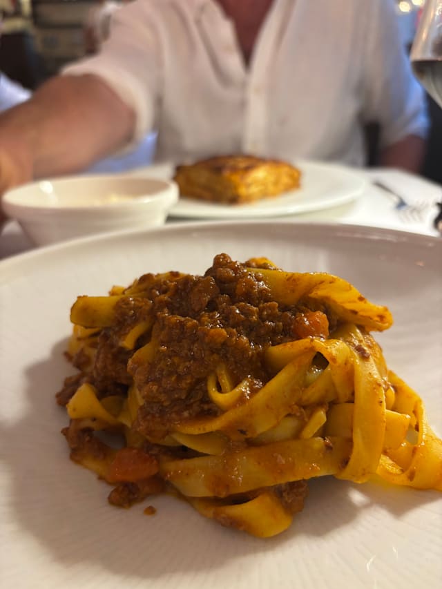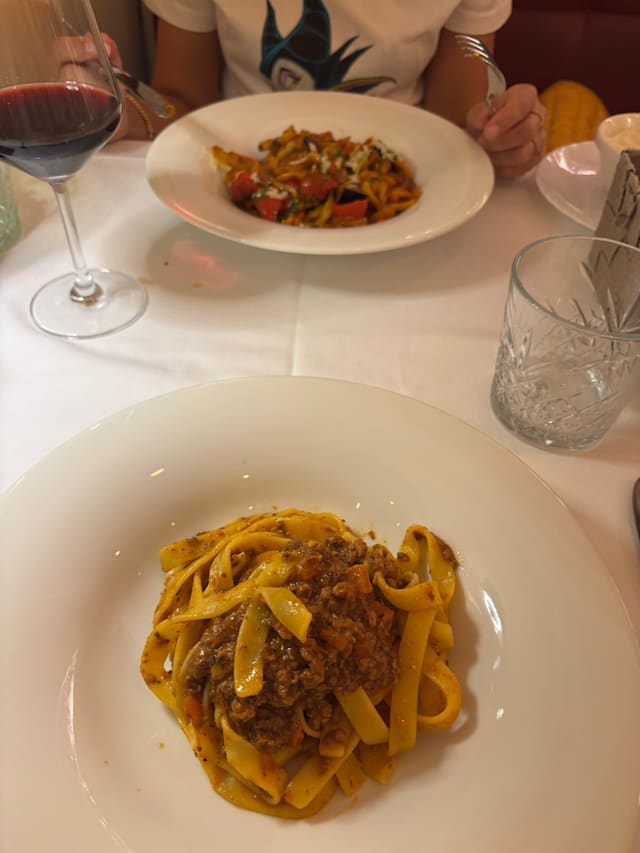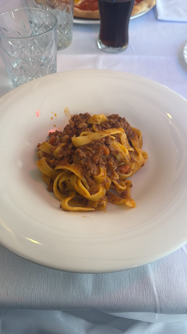 10/10We had different dishes and shared them. We had the Tagliatelle with Ragu, the Tortellini on broth, the duck and the fish balls, Pizza Margarita and fries. All dishes very good. We also had a bottle of red wine, a Fondatori Sangiovese Superiore Riserva 2021 from Merlotta.