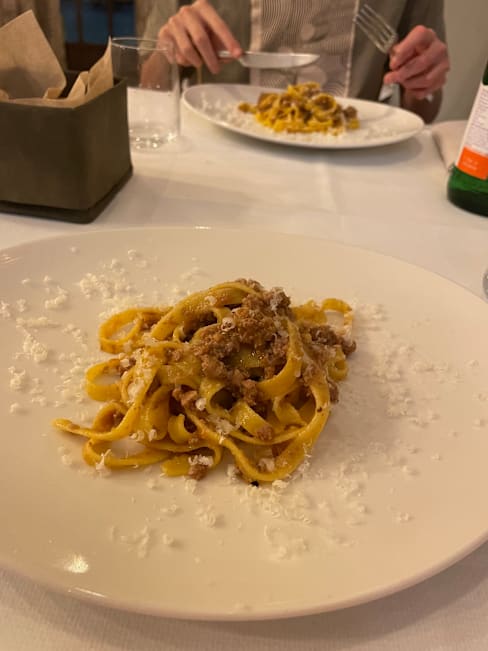 10/10Fantastic primo (tagliatelle al ragu) and secondo (tagliata di Fassona). After eating around Bologna and Modena the last few days, I found the ragu generally on the quite salty side, but their version was perfectly seasoned. The tagliata was done precisely medium rare and the best texture and flavour. I would come back to the restaurant but sadly we leave Bologna tomorrow. Will definitely fly back to Bologna for a meal like this in the future.
