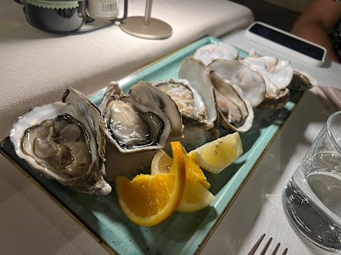 9/10the starter of raw fish is not as fresh as I expect but the oyster is quite good, the pasta of squid ink is good