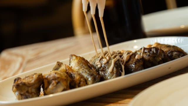Mayo de jalapeño con tequila, bacon tostado, polvo de totopos y guacamole con encurtidos.