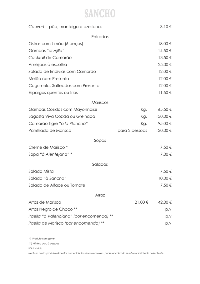 7.5/10We were looking for a typical Portuguese dining experience and were recommended Restaurant Sancho. First impression on arrival was pleasing but the over attentive nature of staff left us feeling that decisions of menu choice and wine were made for us rather than letting us choose freely ….. it wasn’t after all, “table d’hôte” or a restaurant “taster” menu. No complaints about the quality of the food nor the pared wine that was indeed selected for us. Opportunity to decide on dessert was a rushed affair with a rather “fast” trolley, all of which looked delicious but we don’t do dessert as a rule. We considered a “porto” and were offered the waiter’s choice rather than a recommendation from the list. We declined but were given a complimentary vintage, perhaps to ease any misunderstanding? On the bill, there was a significant cover charge plus one for cheese on the table upon arrival despite the menu stating otherwise unless ordered by the customer. A bitter sweet experience overall.