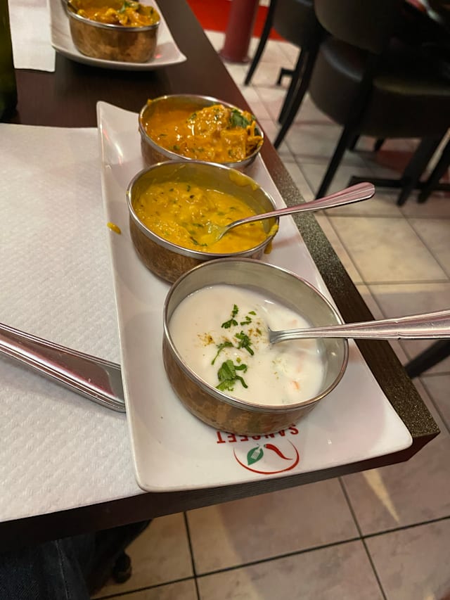 6/10The meat seemed very good quality (lamb and chicken). The food was fine and the staff is very pleasant. The dessert had a very good and interesting flavor. In a city with many Indian restaurants I can’t say that we’d go back here. The flavor was decent but all of the sauces were too thin. There was just nothing special. The paratha bread was not good.