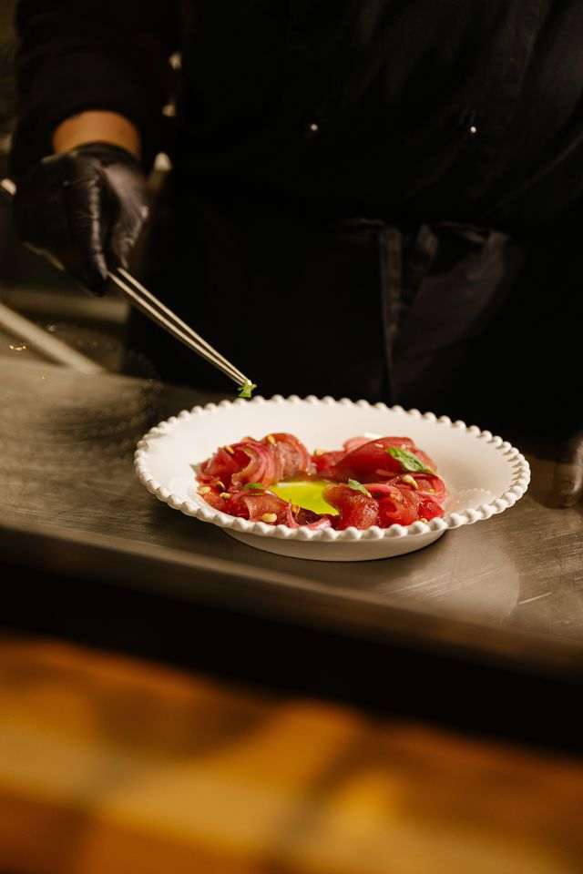 - Tonno rosso del mediterraneo crudo con olio al basilico.