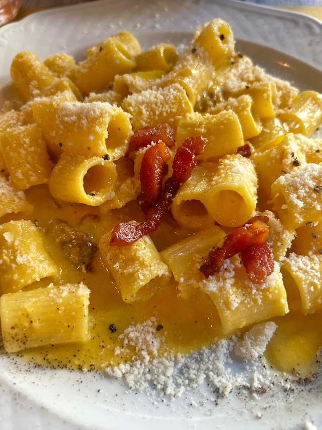 10/10+2we arrived for our booking at 3pm, we only reserved an hour before, we were going to use the fifty percent discount but then the form suggested we used a 50 euro discount. but even without I would have happily paid full price for what we received. I'm a Brit who lives in Spain and my partner is Italian argentian so we have a varied food taste. this place did not disappoint. excellent wine. the carbonara was incredible, the trippa was cooked to perfection and I've never had such a creamy tiramisu. service was excellent, the restaurant was packed full and I understand why, also important to note it was full of Italians. would return again in a heartbeat.
