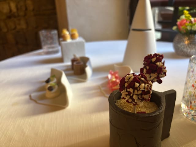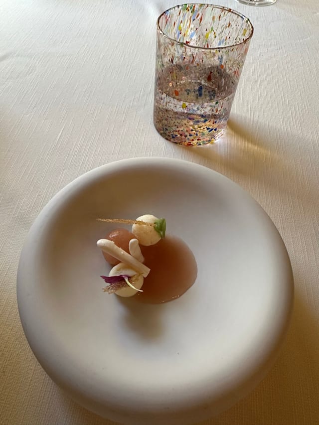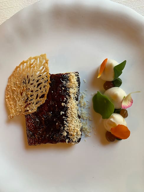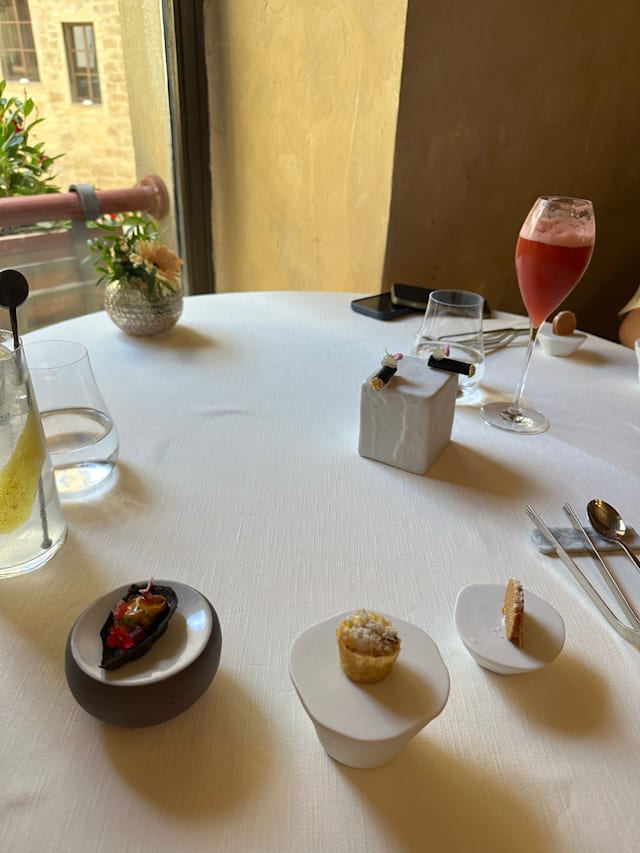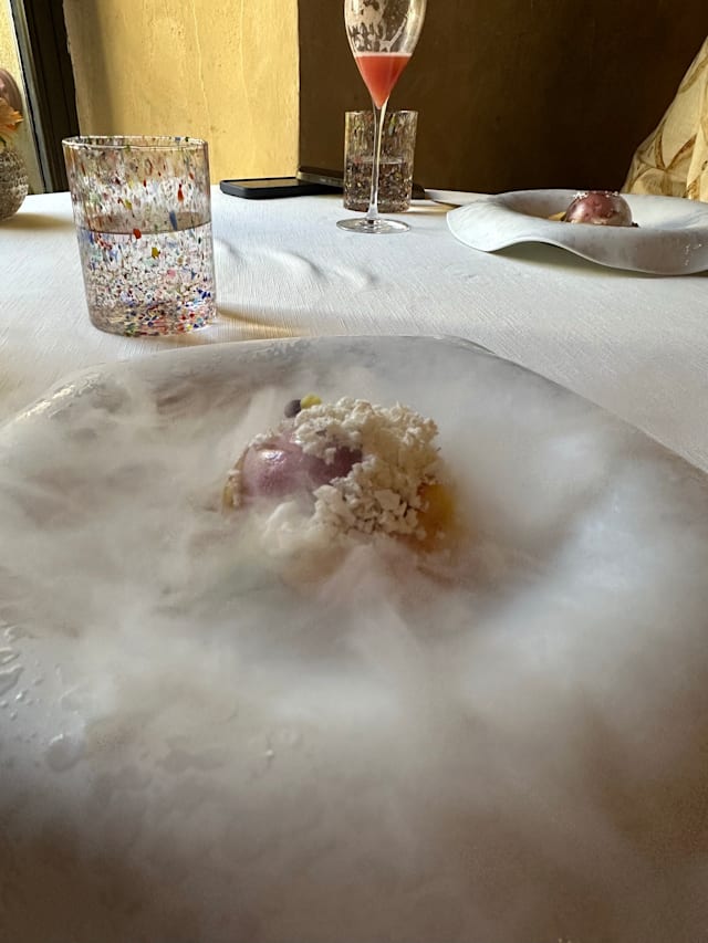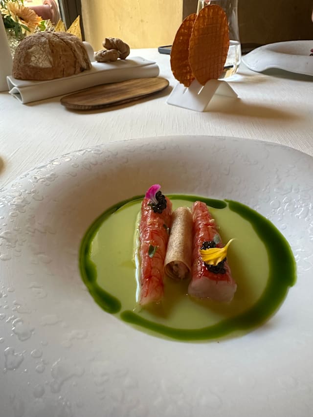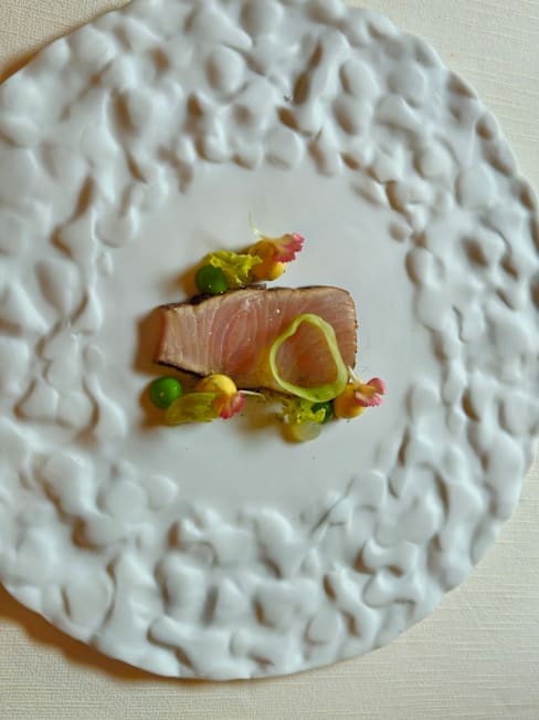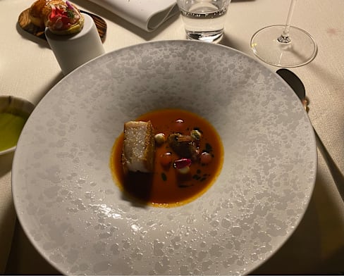 10/10Enjoyed the Asian influences in the dishes - yuzu, coconut, lychee. The attention paid to local foods and traditions but updated was perfecto. The recommendations for wines was on point. Service was outstanding. The room's history was most interesting, 5th century, original stones and a women's prison. I went for lunch and would do dinner the next time.