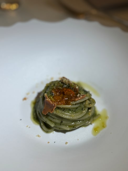 9/10+3Had high expectations when visiting this restaurant. We took the 7 course menu. The food was excellent and the wine pairing was fabulous! We typically don’t like champaign but the pairing with spaghetti and sea urchin was absolutely delicious. And so were the other pairings with many interesting conversations with the sommelier. Indeed many red wines but they are our favorites. Allergies were perfectly taken into account. The service went too fast to our likely but slowed down after a comment. At one occasion the knifes were not sharp enough. And the English of some waiters was difficult to understand. After dinner we were offered to take friandises with us, which is quite unique in our experience. All in all a great evening with real Italian dishes and wines 😊🇮🇹😊