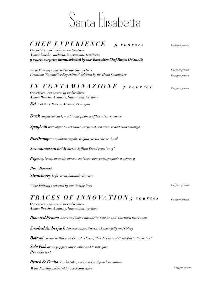 Dear Guest, we are flattered by the beautiful words and happy that this experience at our restaurant Santa Elisabetta will remain with you forever! We will share your comment with the whole team and look forward to welcoming you back to our restaurant. Thank you again and best regards Carla Balli Guest Relation
