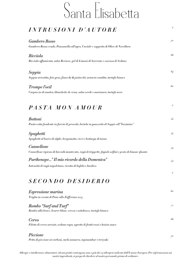 Dear Guest, We sincerely thank you for your kind review and for sharing your experience at our restaurant Santa Elisabetta ,your review allows us to continue to improve our service and achieve guest satisfaction. We are happy to understand that the service you received from our team enabled you to have a pleasant evening. We thank you for your words regarding the dishes that will be shared with the Chef, the Maitre and the entire team. Hoping to have you among our guests again, please do not hesitate to contact me with any requests. Our best regards, Carla Balli Guest Relation