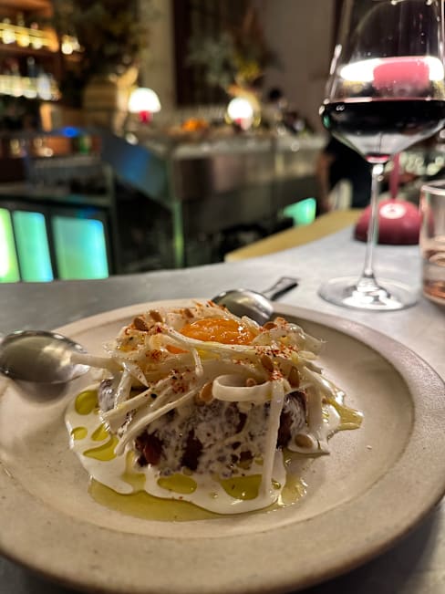6/10The meal didn’t quite hit the mark. While we were expecting a well-balanced dining experience, the food was heavily over-seasoned. The tartare, in particular, was a letdown—almost completely overshadowed by the overpowering spices, making it difficult to taste the meat itself. It wasn’t the flavor profile we had hoped for