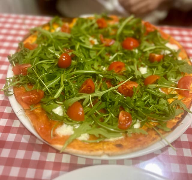 9.5/10Amazing pizza, Roman style (thin crispy crust), great quality and not expensive. The outside space is a bit noisy (ac and cars) and the inside is a bit small and hot, it's the only negative.