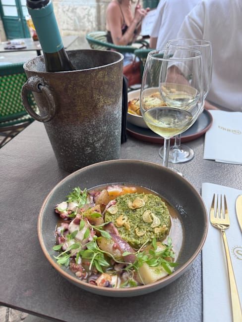 2.5/10The octopus tasted like rubber! It was impossible even to cut it! I asked to replace, it took 30 min and they offered the same rubber octopus no better than the first one. In the end they charged us as normal. We were hungry and totally disappointed. It’s a shame for a restaurant to offer this kind of food and not admit it was a disaster. Avoid this place