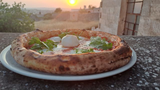 - Fiordilatte, caciocavallo silano, ndujia e bocconcino di bufala rucola