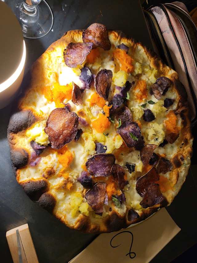 - Patate gialle, patate dolci, patate viola in chips burro chiarificato alla salvia e maggiorana