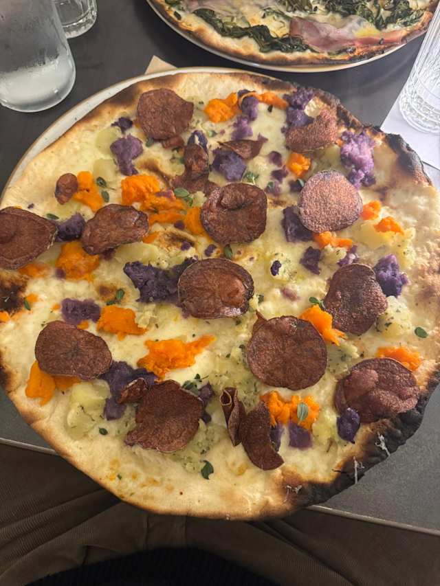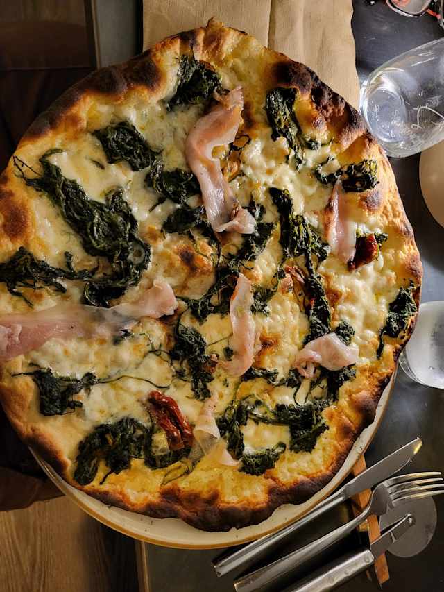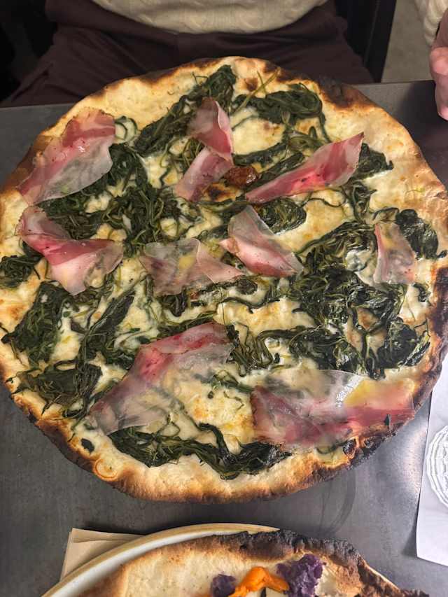 - Fiordilatte, guanciale, cicoria ripassata e pomodoro secco