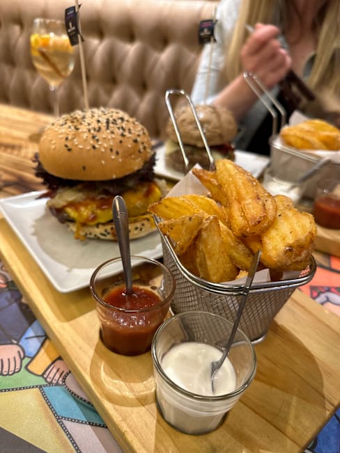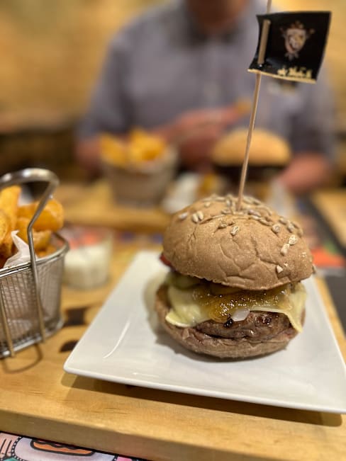 9.5/10In a cosy, medieval inspired spot, a fine hamburger meal was served. Aided by very attentive and welcoming staff, we enjoyed every last bit of our meal, from the crisp onion rings, to the star of the show, the tender and amazingly put burger, to the finale, with a soft, rich dessert to cleanse the palate. Definitely recommend this spot, am curious to try out the other locations!