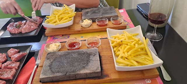 2.5/10Sad decoration, noisy people at the bar, frying oil smell all over and on our clothes, food not great