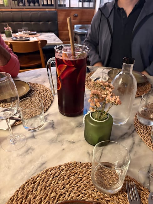 9/10Their red sangria was amazing! Best sangria that we had on our trip to Lisbon and Porto (and we had a fair bit). Tempura green beans were very good. Was happy that they had a vegetarian option.